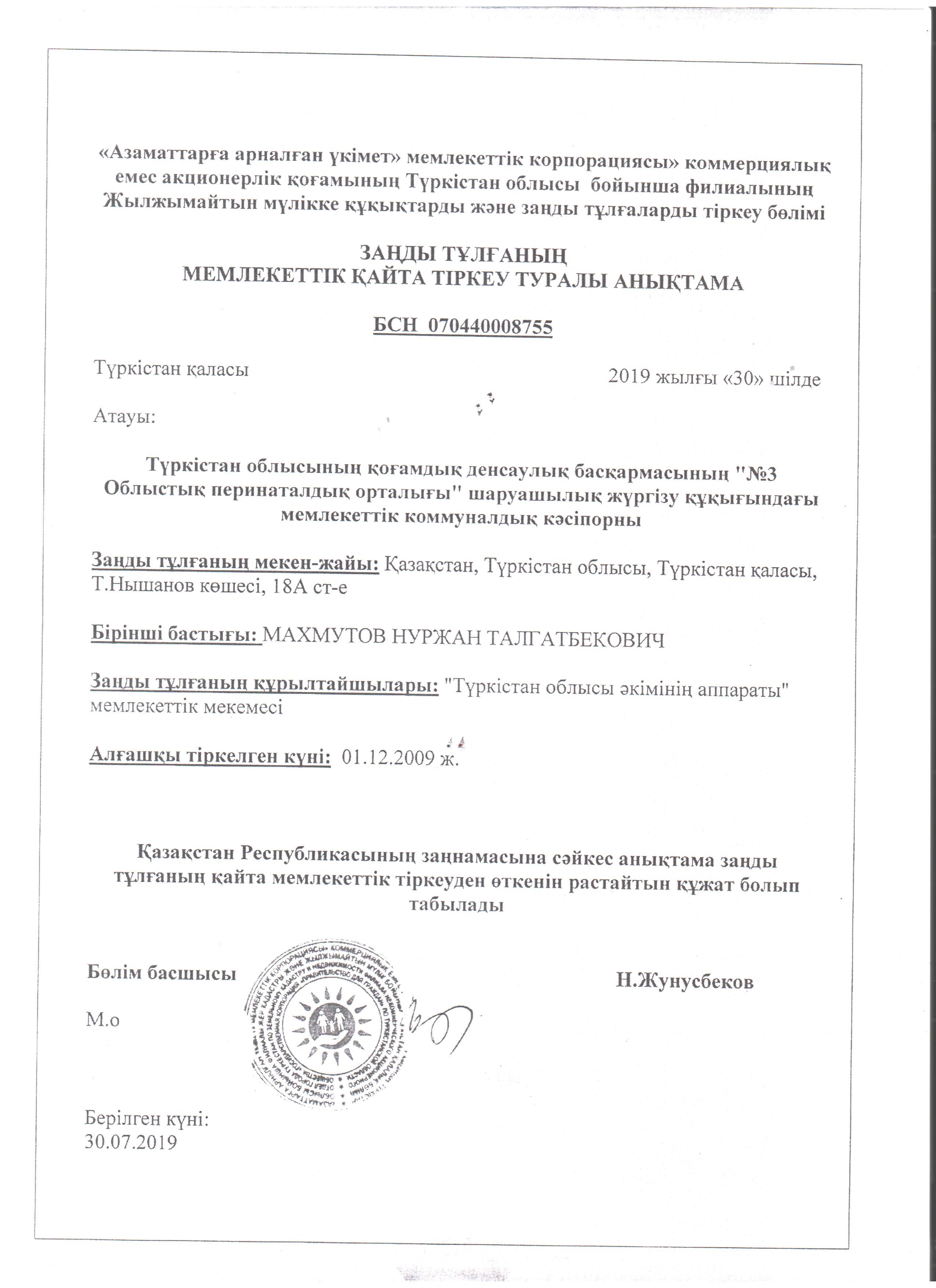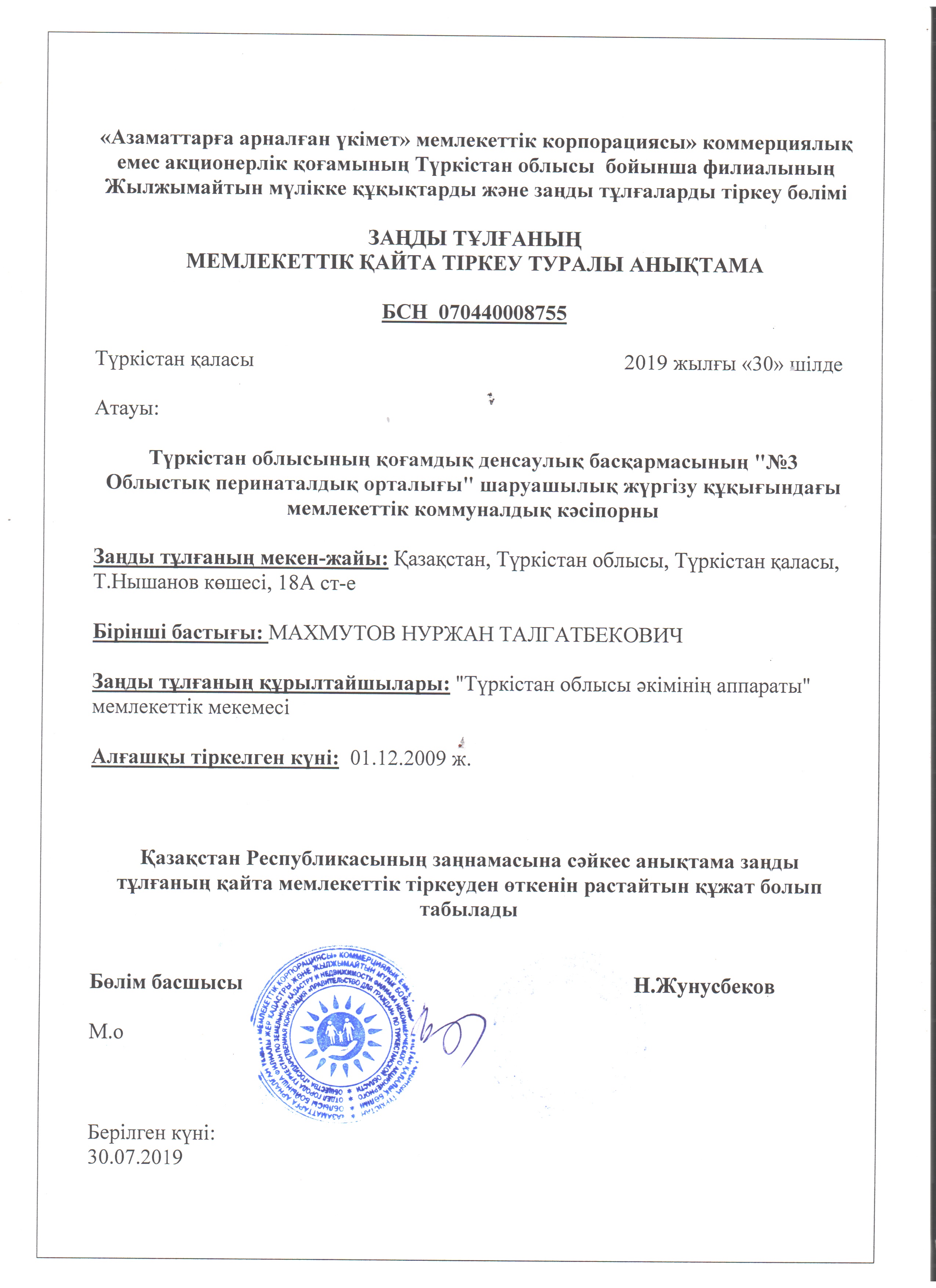 Заңды тұлғаны мемлекеттік қайта тіркеу туралы анықтама