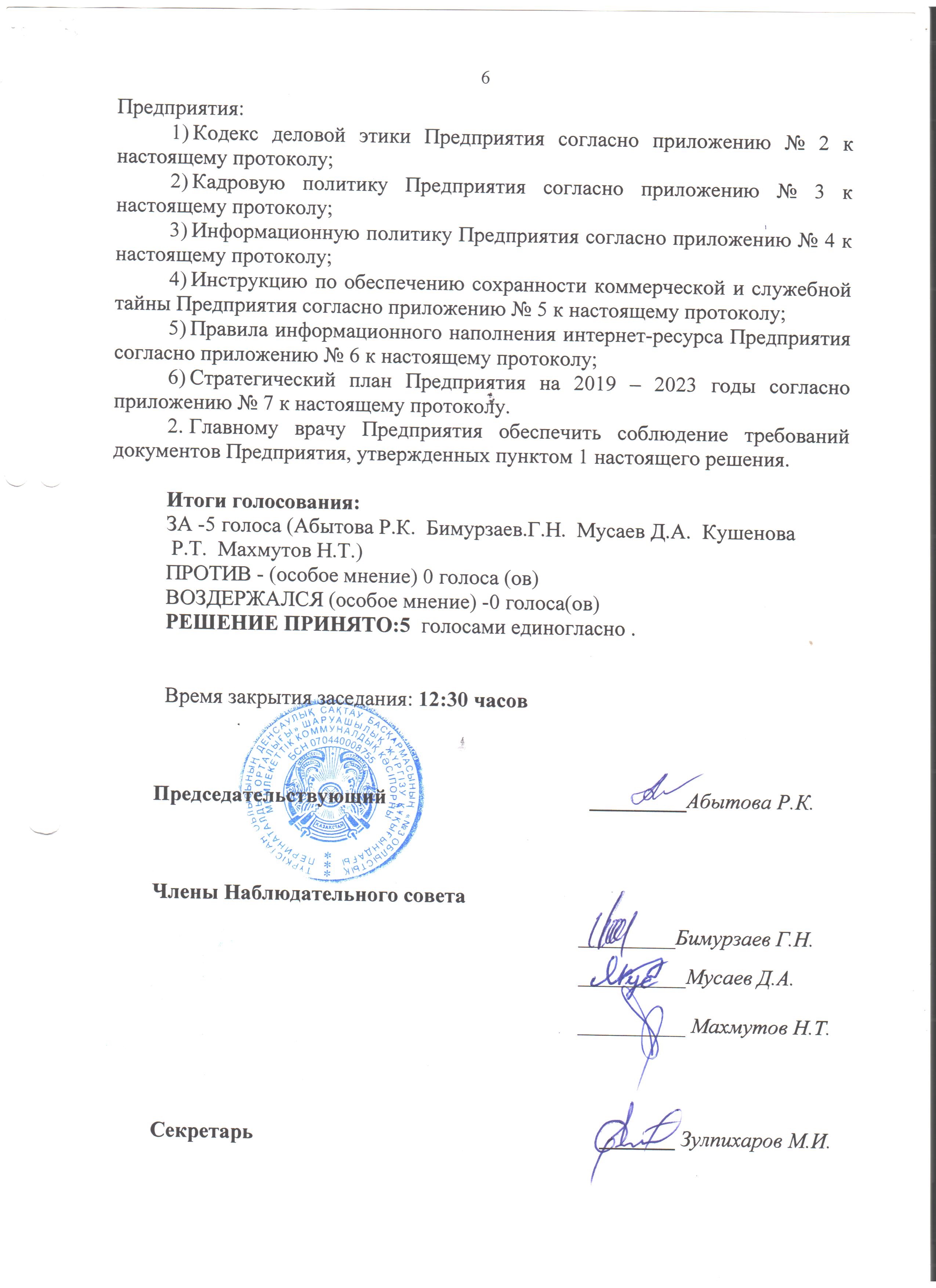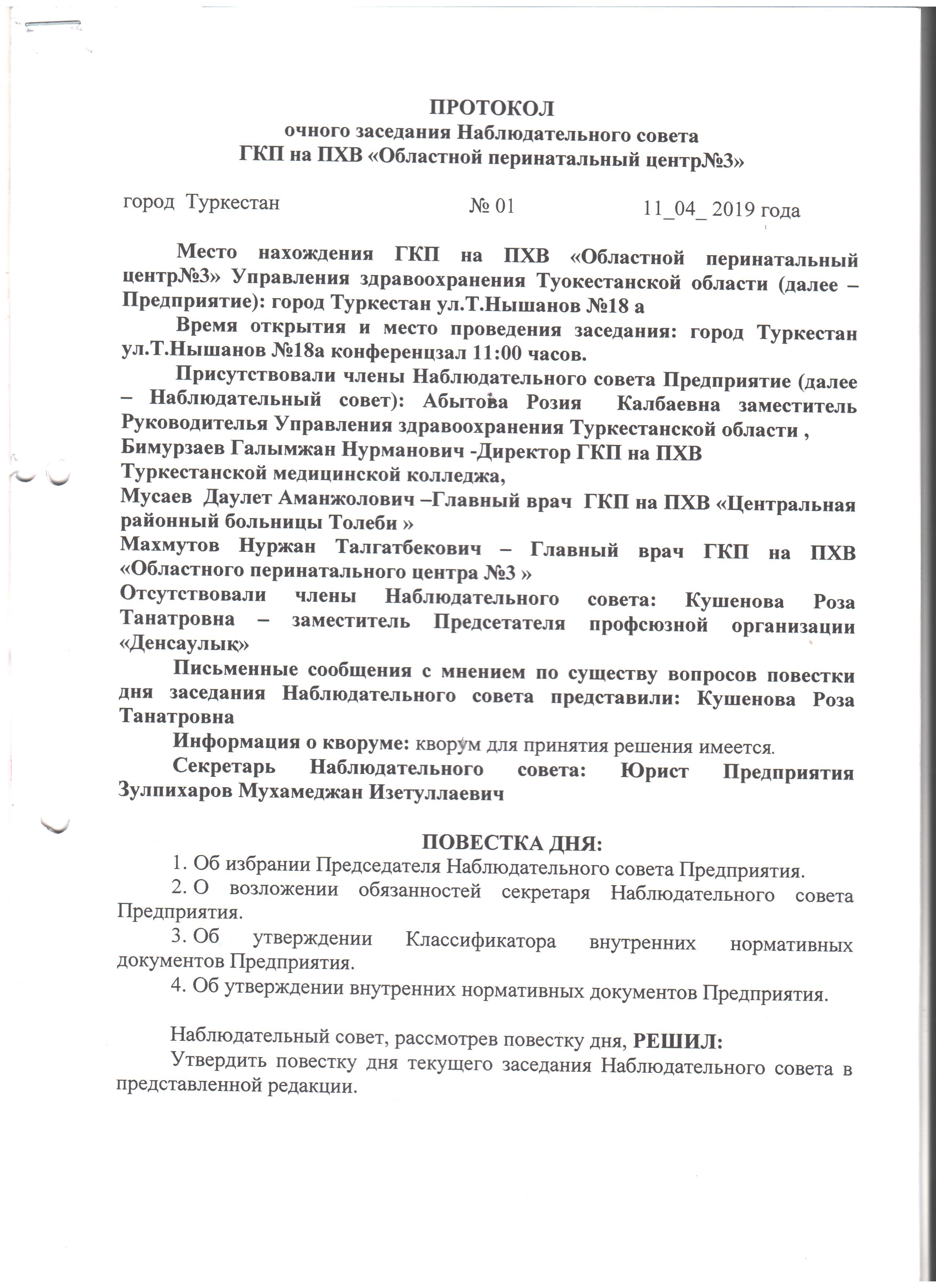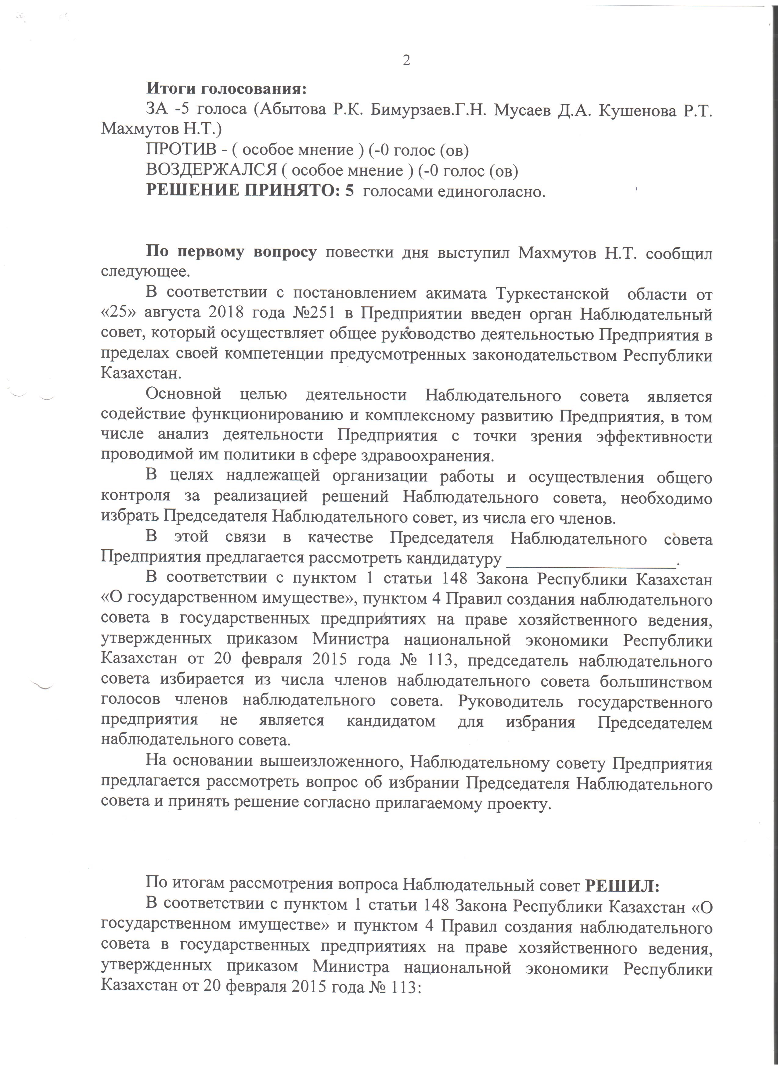 Протокол очного заседания наблюдательного совета