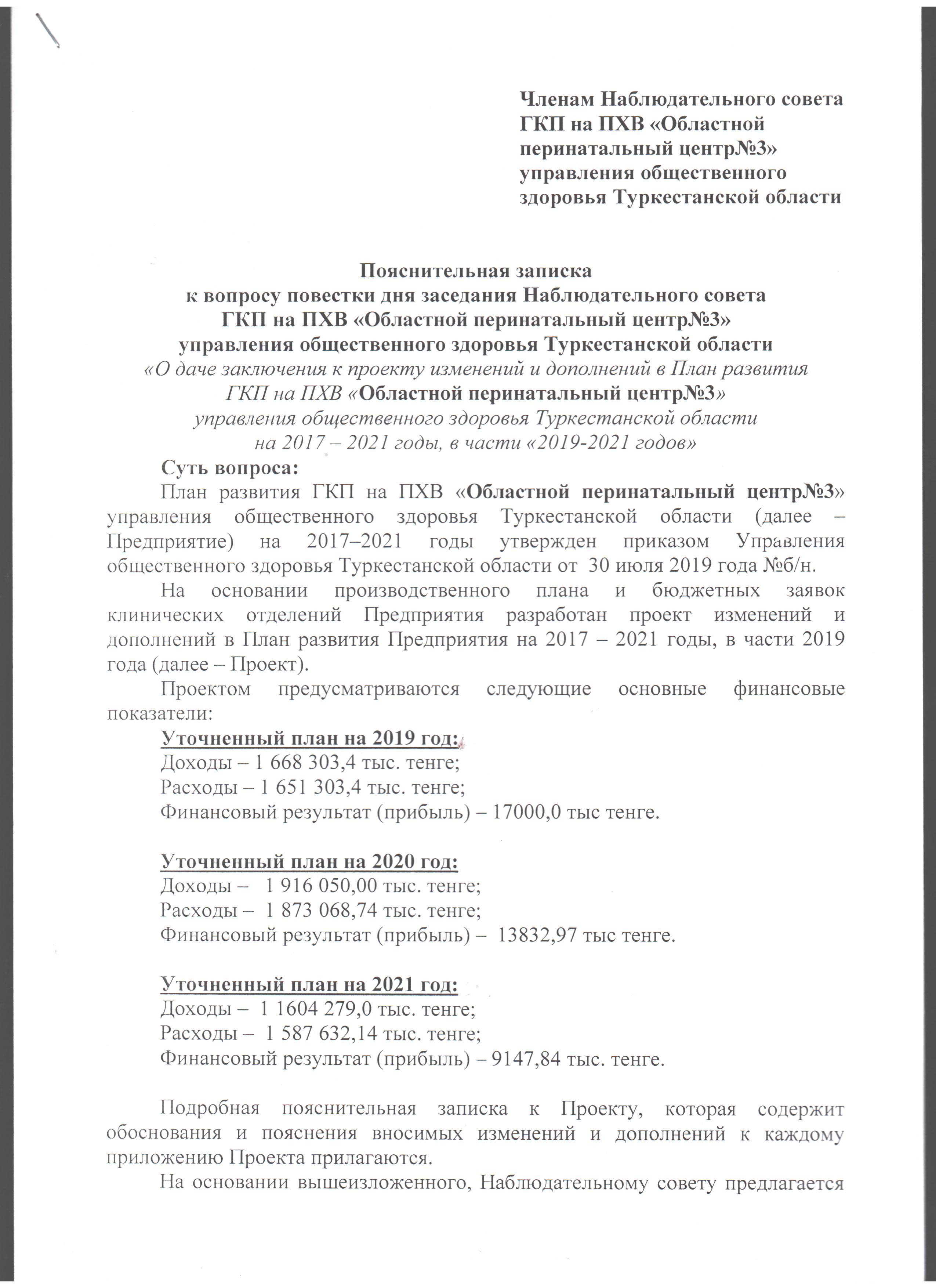 Пояснительная записка План развития